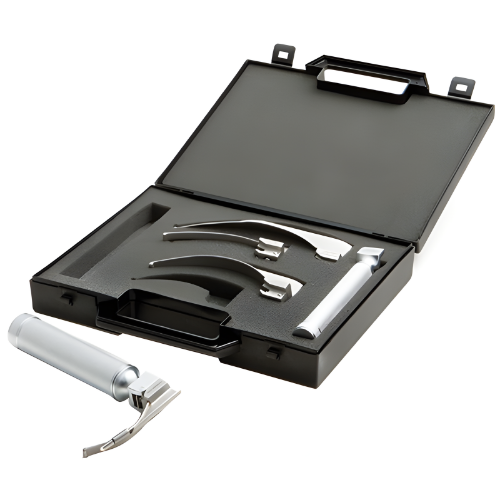 Kit completo de laringoscopio con hojas y mangos estándar en un estuche ajustado. Cuenta con versión convencional y de fibra optica. Kit Macintosh incluye 4 hojas y 2 mangos con pilas incluidas. Kit Miller incluye 5 hojas y 2 mangos con pilas incluidas.