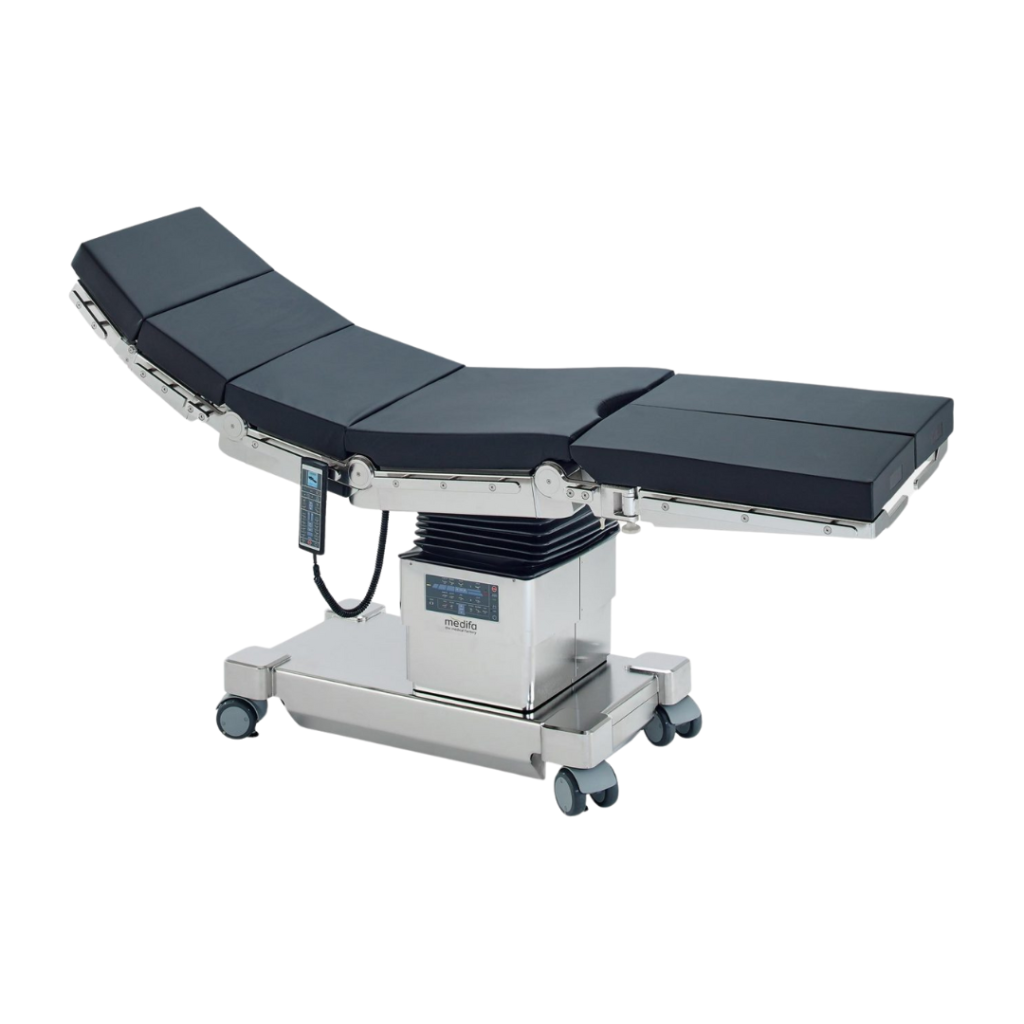 La medifa 7000 está disponible en dos versiones diferentes. Los modelos están equipados con las funciones básicas electromecánicas de ajuste de altura, Trendelenburg, lateral, de respaldo y de reposapiernas, así como de flexión y posicionamiento de la silla de playa. Las mesas de operaciones se diferencian por el número de articulaciones ajustables eléctricamente. Todos los modelos pueden equiparse opcionalmente con deslizamiento longitudinal de la plataforma, accionamiento eléctrico o sistema de seguridad. Modo reverso disponible.