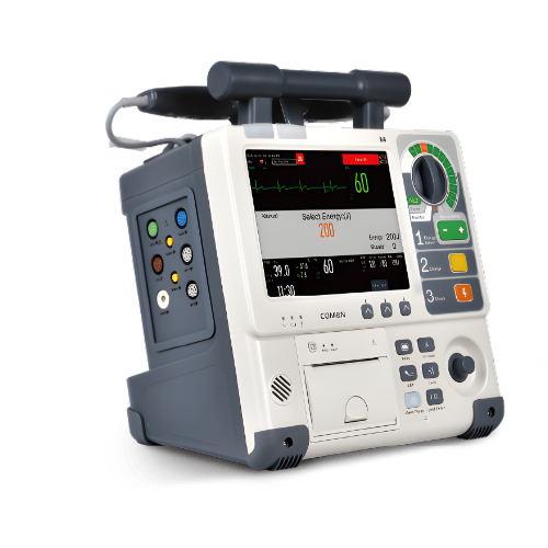 - Interfaz optimizada: Cambio de modo con una sola perilla, operación de desfibrilación en 3 pasos, y selección rápida de energía (hasta 360J).