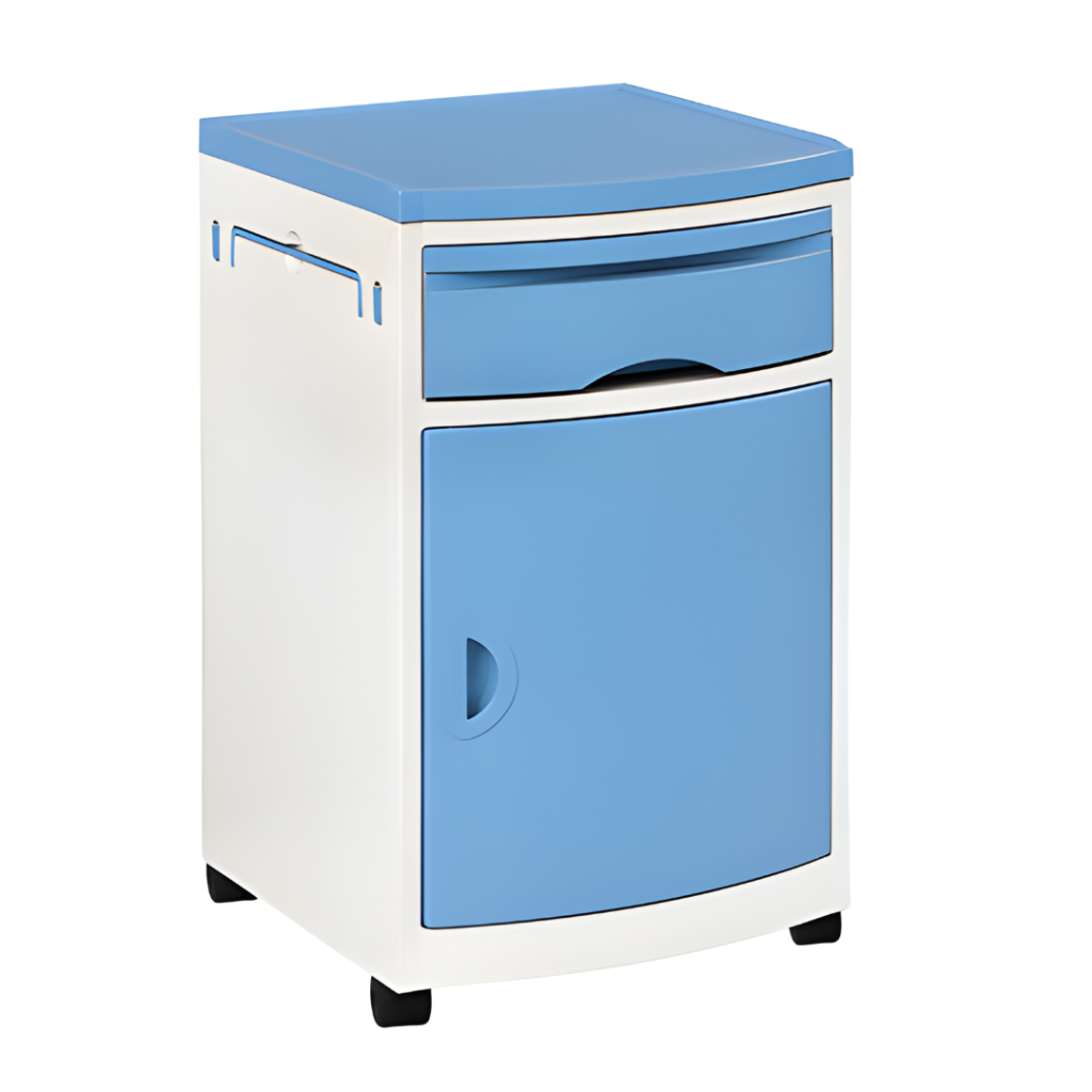 Contamos con muebles clínicos y una amplia gama de veladores de uso clínicos fabricados en ABS de alta densidad, para una mayor durabilidad y facilidad de desinfexion de tipo hospitalaria. El SKS002- W cuenta en su parte superior con un cajón para el almacenamiento de objetos pequeños, y una bandeja de alimentación extensible. En la sección inferior, cuenta con una puerta abatible y un separador interior desmontable para ajustar el espacio a las necesidades del momento. Además, tiene un toallero lateral tipo manilla y 4 ruedas para facilitar el traslado.